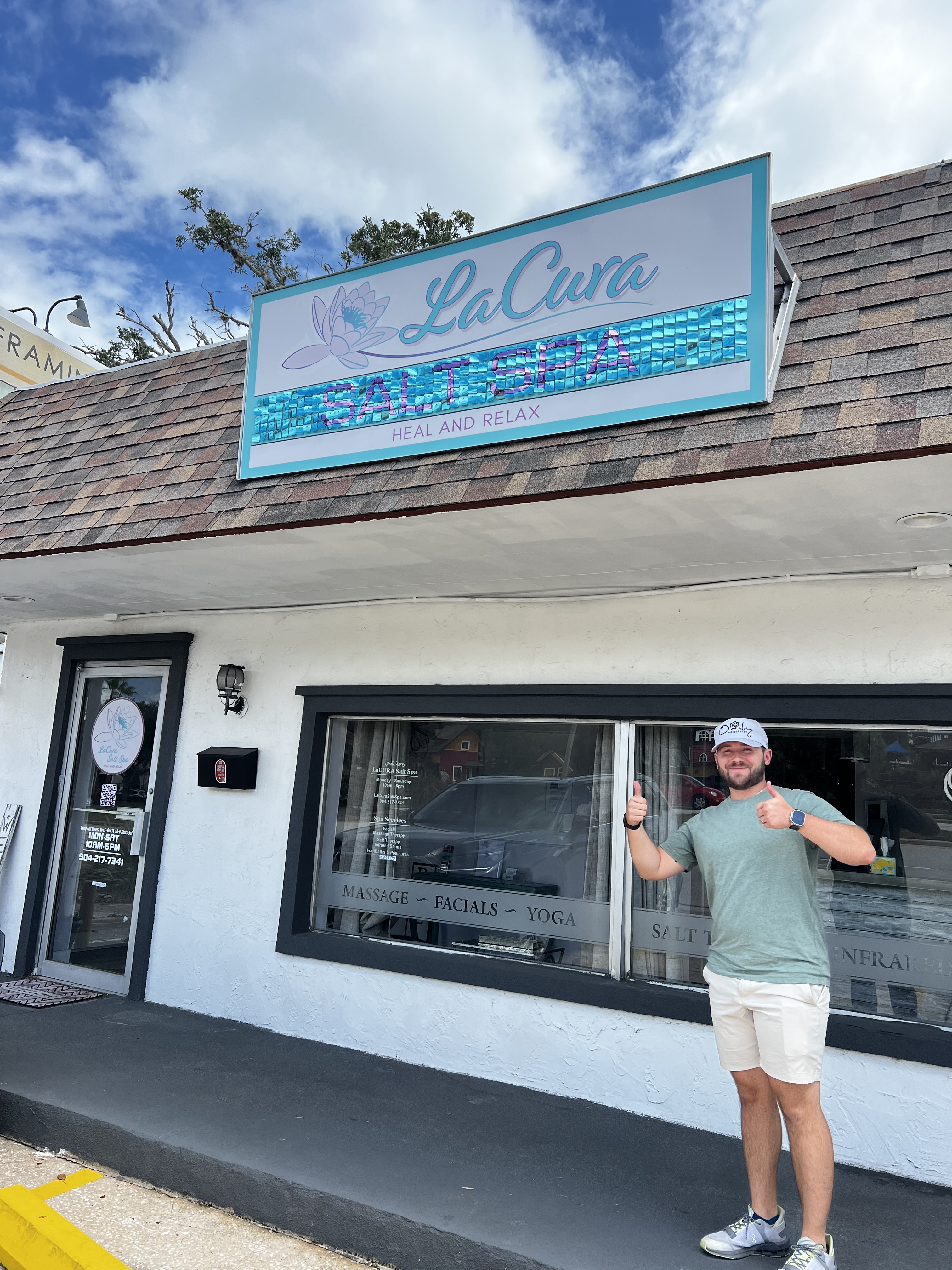 We made a stop for a little “post-race pampering” at The LaCura Salt Spa where we both spent time in the Salt Room coupled with a Man Facial (Kyle) and The Signature Facial. I was instantly relaxed as I reclined in the Salt Room.
